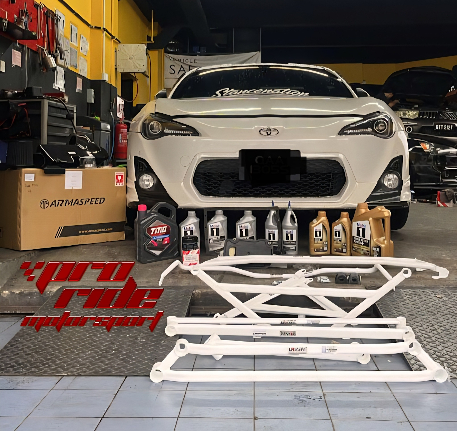 We went all-in on the Ultra Racing bar setup, something I personally tested and used back when I daily drove my GT86. The goal was to tighten up body flex and make the car feel solid, agile, and confident again.